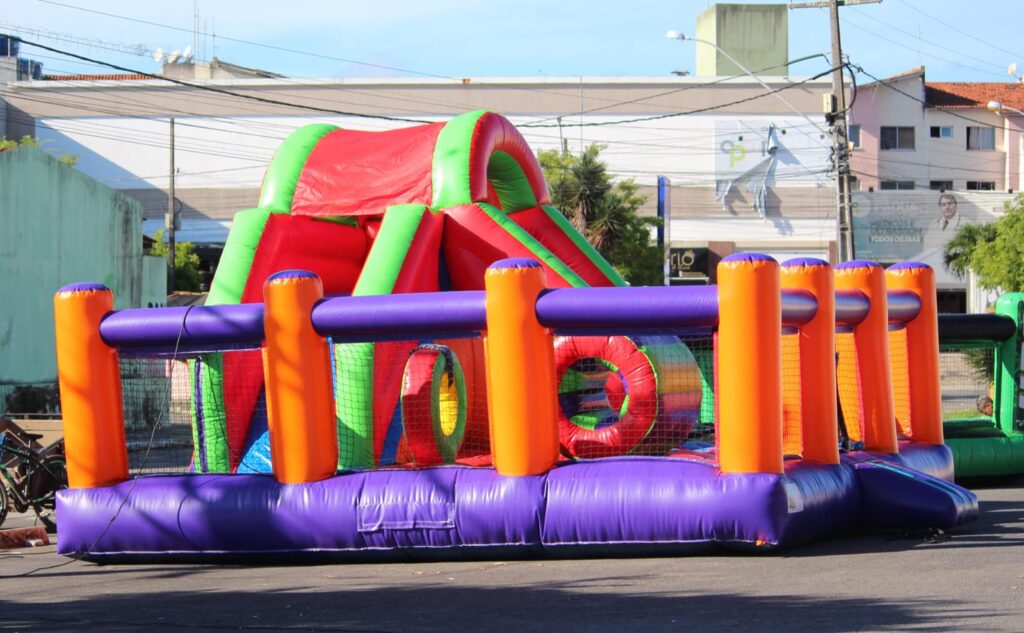 Os brinquedos infláveis foram o destaque da festa, garantindo diversão para todas as idades.